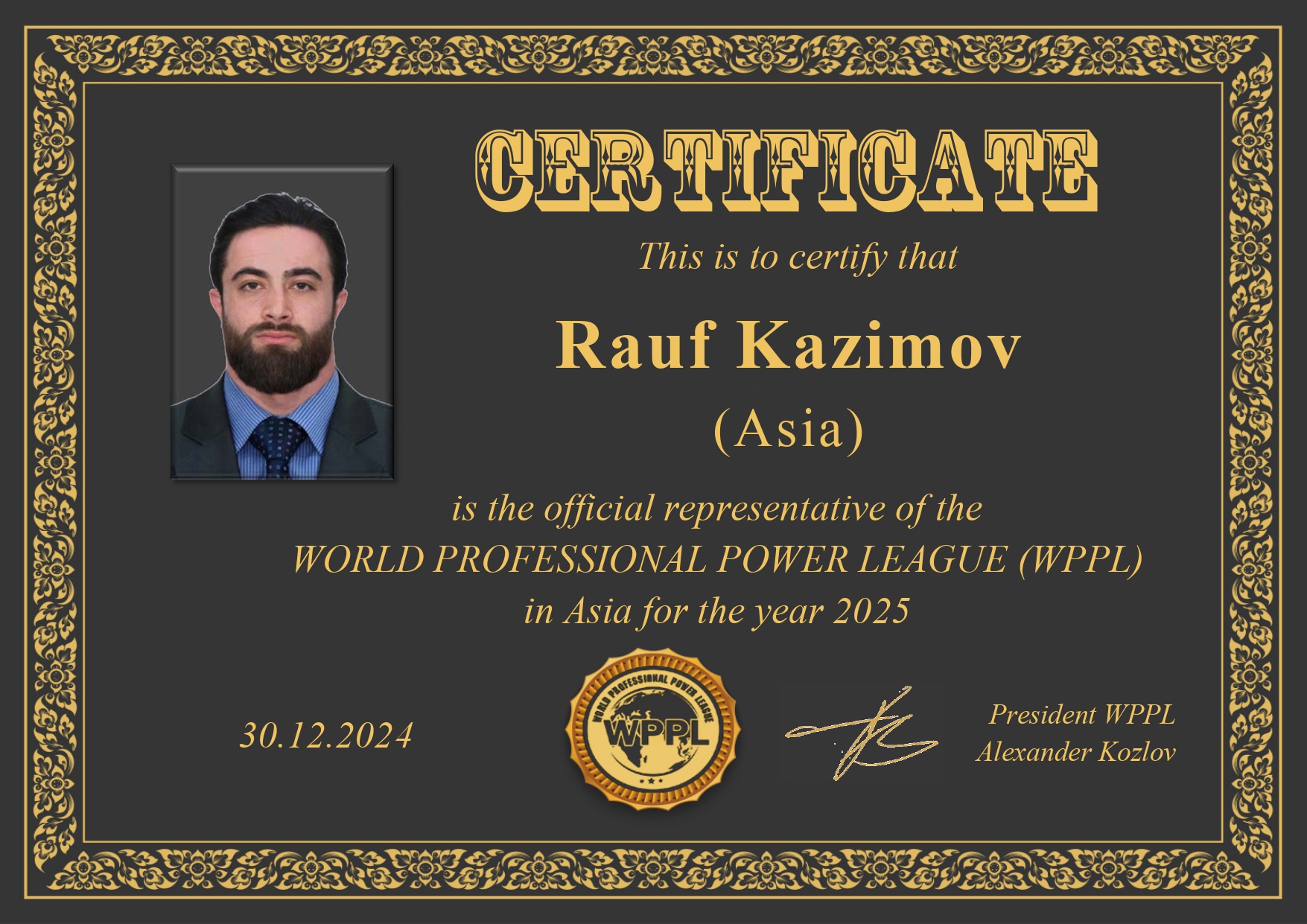 Certificate Asia with photo 2025